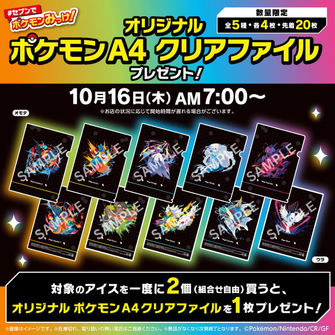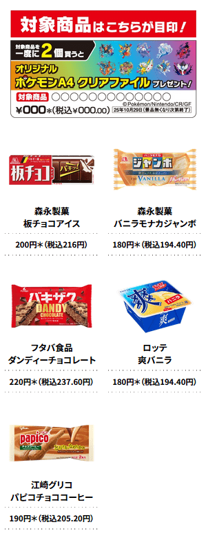 セブンイレブン『ポケモン』コラボ!A4クリアファイルおまけが対象のアイスでもらえるキャンペーンが2025/10/16より開催!全5種類!