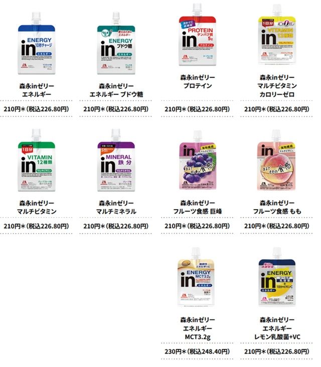 • 森永inゼリー エネルギー 210円*(税込226.80円)