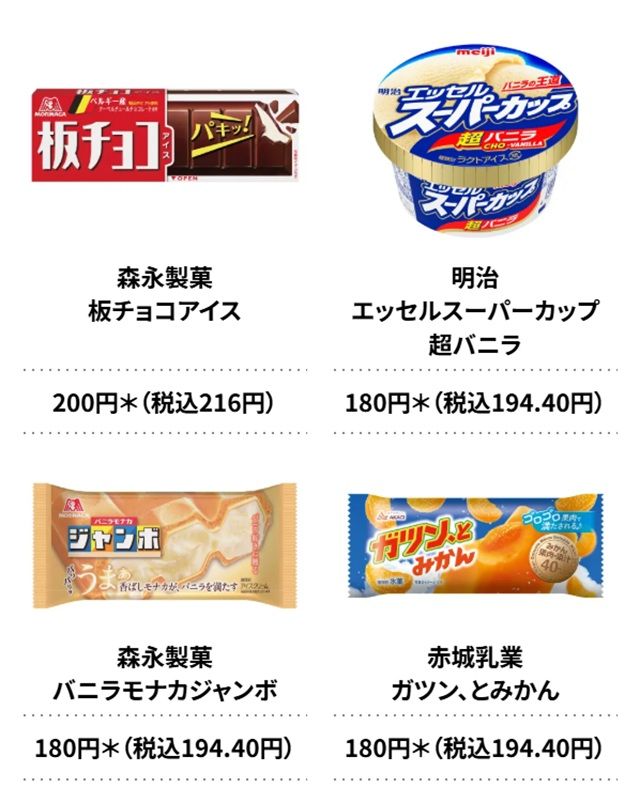 ≪対象商品≫第2弾はアイスが対象商品になっています!