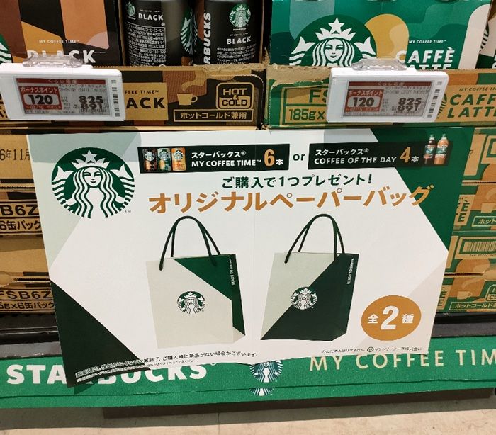 スタバの缶コーヒーを6缶を買うと、オリジナルペーパーバッグがもらえます!