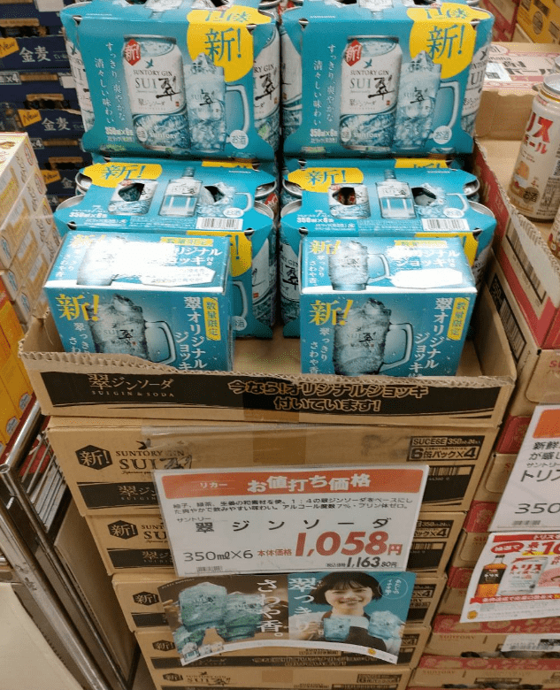 近くのスーパーでやっと翠ジンコースター見つけて購入!炭酸もサントリー