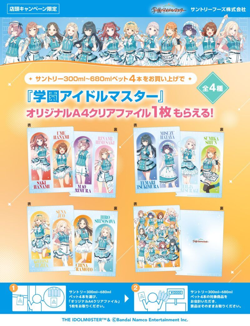 サントリー『学園アイドルマスター』クリアファイルおまけがもらえる店頭キャンペーンが2025年春に開催!