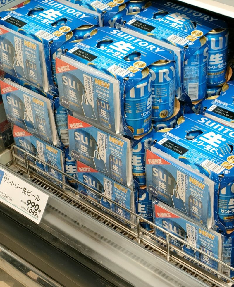 2026年2月中旬から販売促進のキャンペーンを開催しています!サントリー生ビール の『缶型エコバッグ』グッズ付きのセットが販売しています。