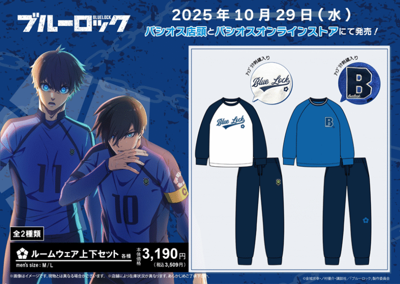 パシオス『ブルーロック』コラボ!ルームウェア上下セットが2025年10月29日(水)~新発売!