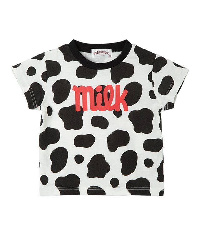 不二家のカントリーマアムのパッケージ風プリントがかわいいTシャツです。生地のドット柄プリントもポイントです。