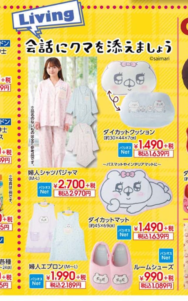 パジャマ、クッション、ダイカットマット、エプロン、ルームシューズが展開します!