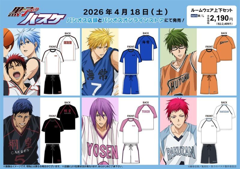 パシオス『黒子のバスケ』コラボ!各高校デザインのルームウェアが2026年4月18日(土)~新発売!