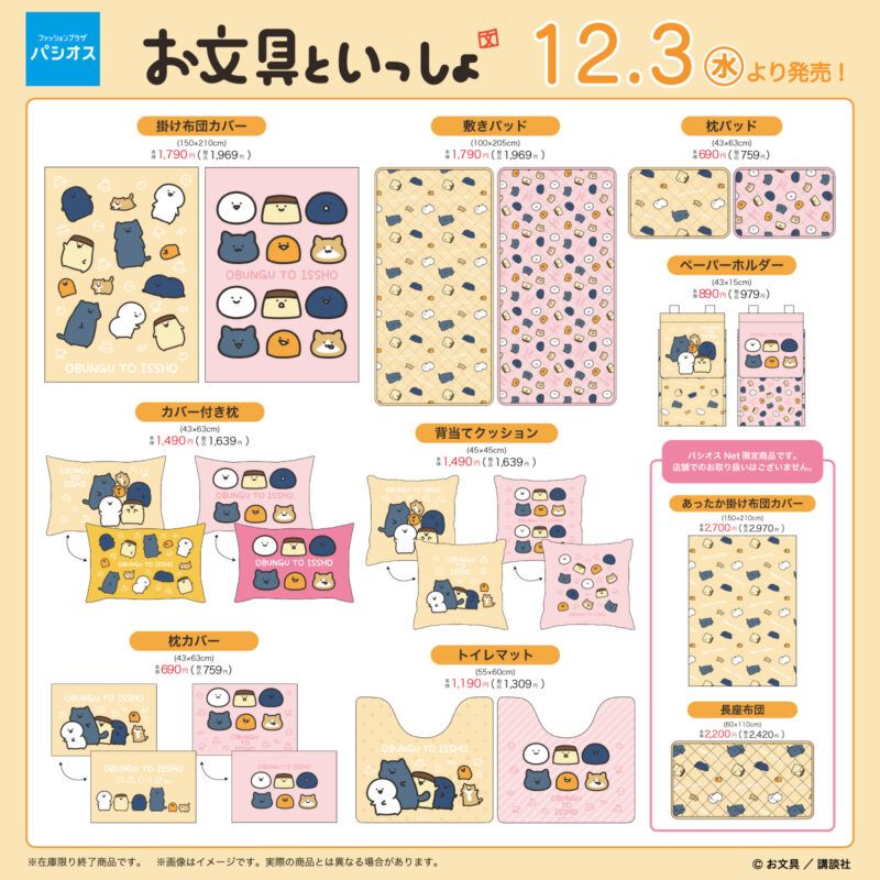 12/3(水)より「お文具といっしょ」コラボ商品がパシオス店舗とオンラインストアにて販売!
