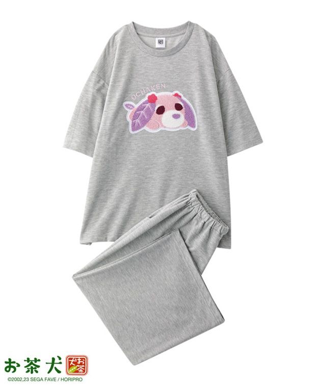「お茶犬」のミニ裏毛素材のルームウェアです。