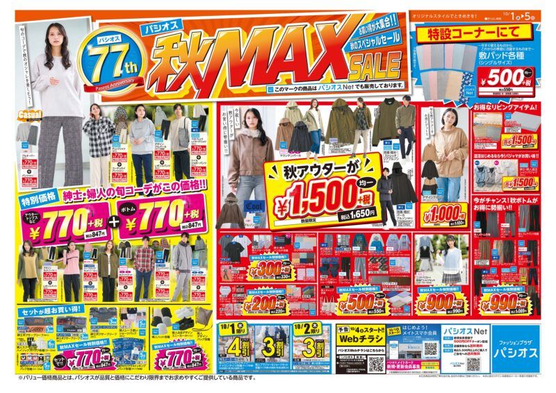 秋MAXセール 売出期間:10/1(水)~10/5(日)