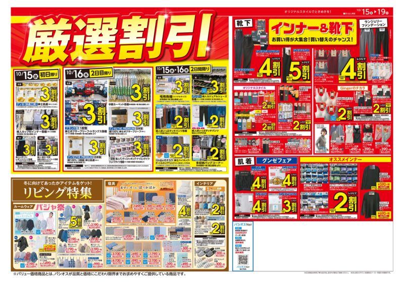 セール&秋の男祭&大肌着祭 売出期間:10/24(金)~10/26(日)
