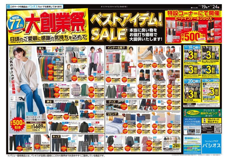 77周年大創業祭 売出期間:11/19(水)~11/24(月)