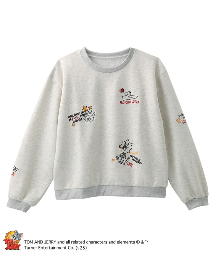 「トムとジェリー」のポップな刺しゅうデザインがかわいいトレーナーです。