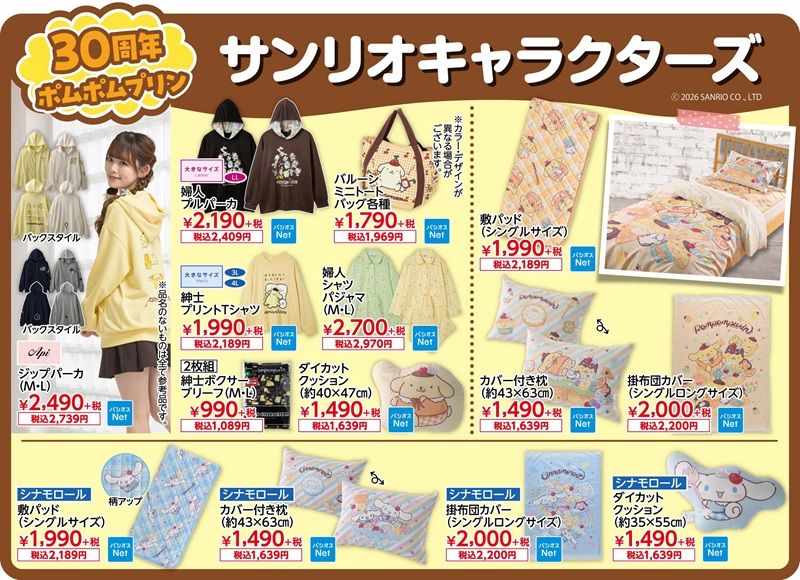 ポムポムプリン、シナモロールのインテリアグッズも販売します!