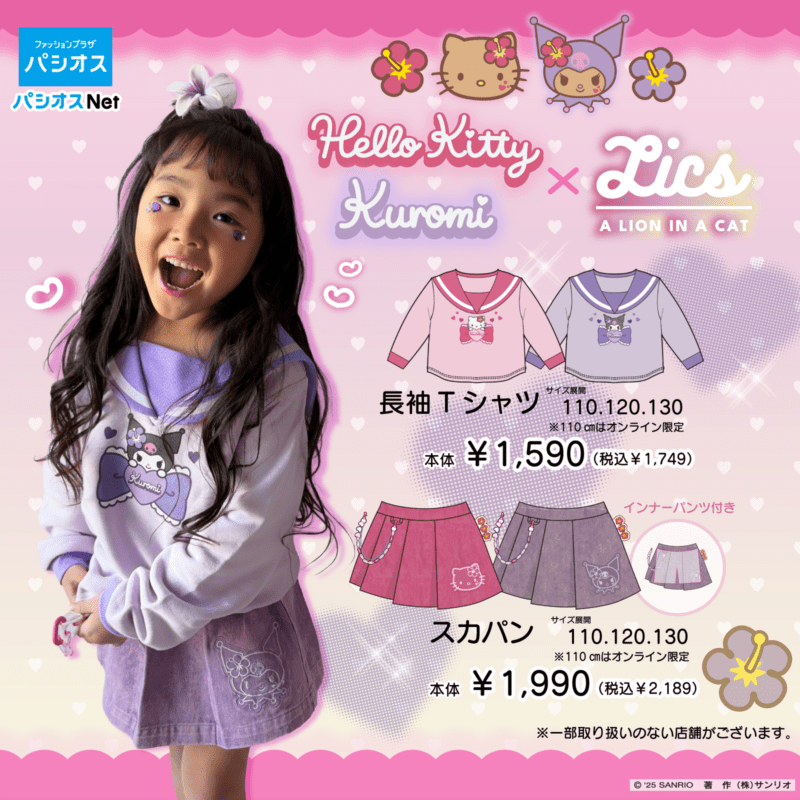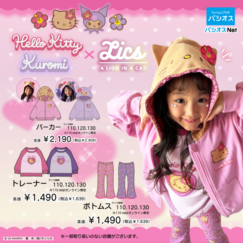 12月24日(水)から、全国のパシオスにハローキティ・クロミ×LICSのキッズアパレルが登場!