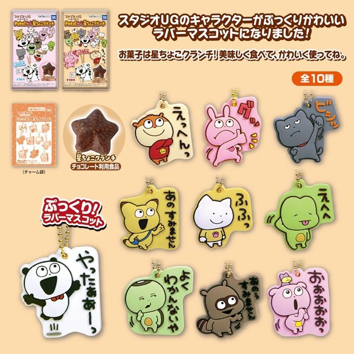 大人気キャラクター「スタジオUG」のラバーマスコット。星チョコクランチ付き。