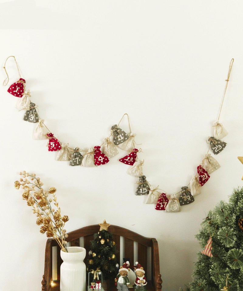 ●ガーランド状に連なった、アドベントカレンダー用キンチャクセット。