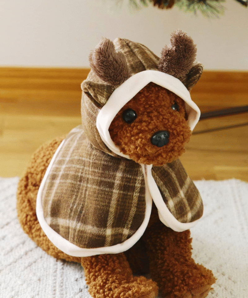 ●トナカイの角のフードがついた、小型犬用トナカイポンチョ。