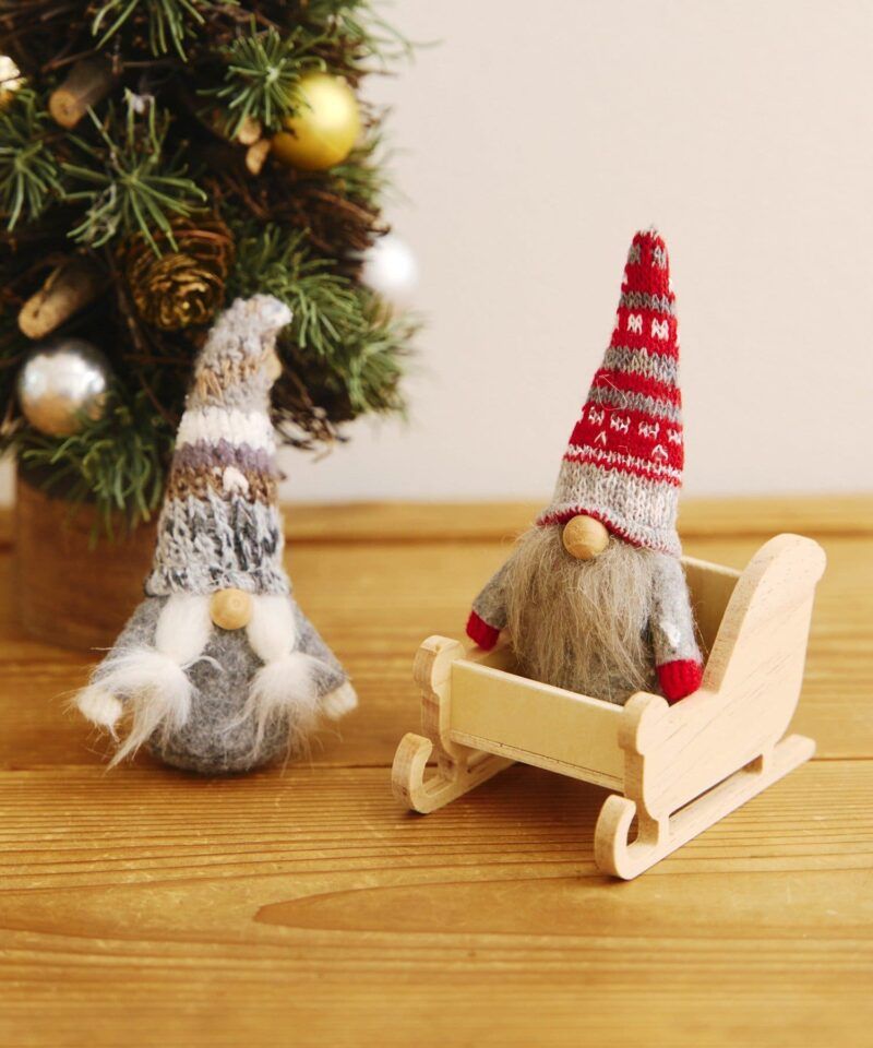 ●クリスマスらしい柄の帽子を被ったこびとのトムテ。