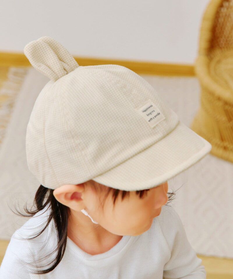 ●てっぺんにうさみみがついた可愛いベビーキャップ。