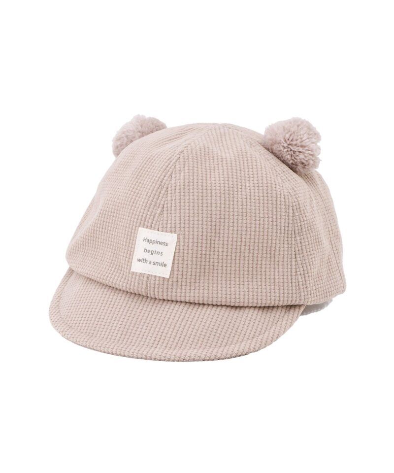 ●くまみみ風のポンポンがついた可愛いベビーキャップ。