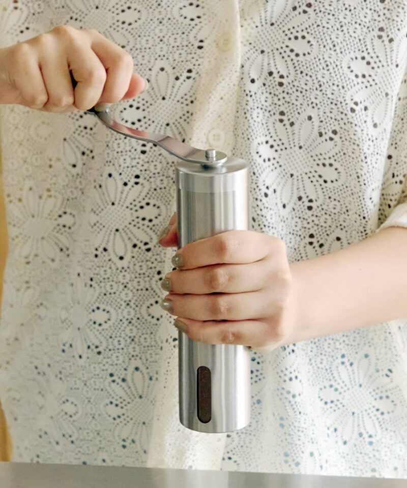 ●無駄のないミニマルデザインのステンレス製コーヒーミル。