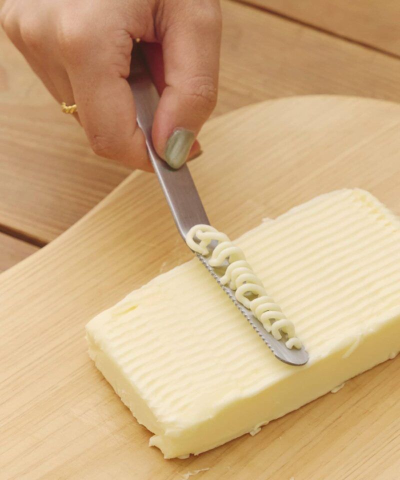 ●冷蔵庫から出したばかりの硬いバターも、細かい線状に削ることができるバターナイフ。