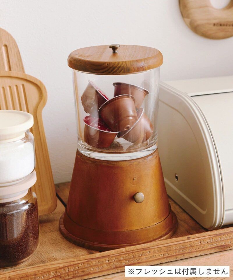 ●ナチュラルな雰囲気漂う、ウッドスタンド付きのキャンディポット。