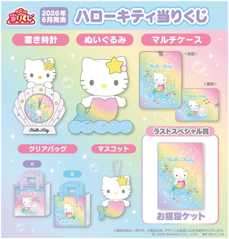 ≪景品ラインナップ≫「ハローキティ当りくじ」2026年6月発売 虹色にきらめくマーメイド姿がかわいいキティ
