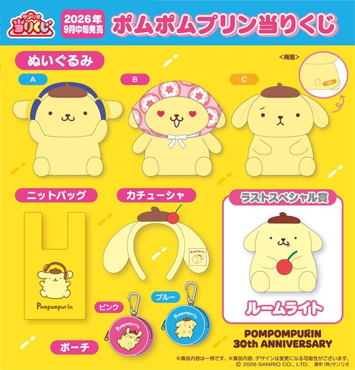 ≪景品ラインナップ≫サンリオ「ポムポムプリン当りくじ」2026年9月発売