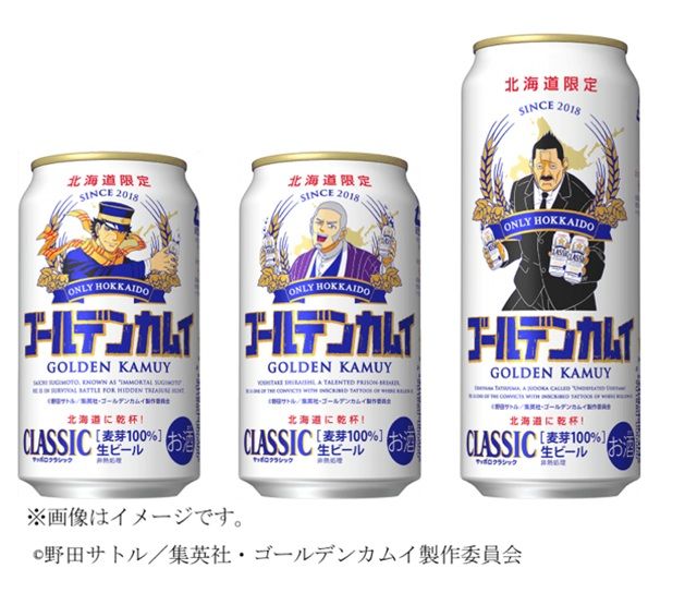 サッポロビール(株)は、TVアニメ「ゴールデンカムイ」とタイアップしたサッポロ クラシック ゴールデンカムイデザイン缶3種類を、7月21日に北海道で数量限定発売します。
