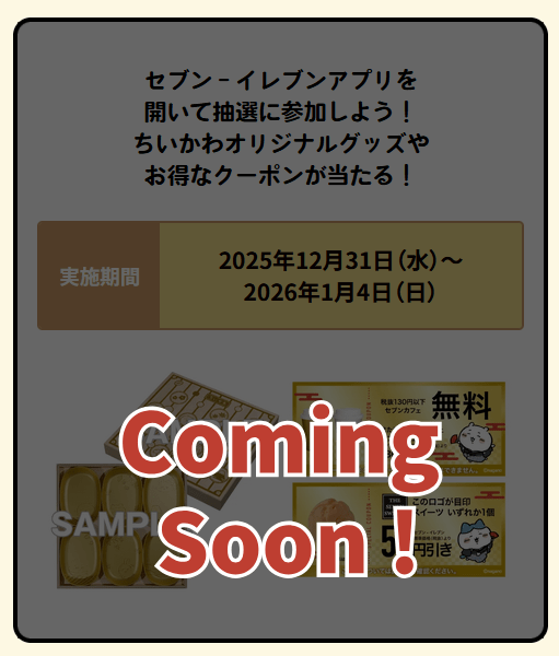 セブンイレブン『ちいかわ 年末年始(2025年末~2026年始)』アプリ大抽選会