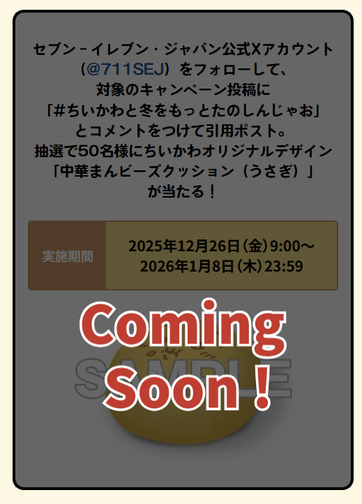 セブンイレブン『ちいかわ 年末年始(2025年末~2026年始)』フォロー&引用ポストキャンペーン
