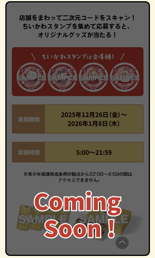 ちいかわスタンプを集めて応募すると、オリジナルグッズが当たる!