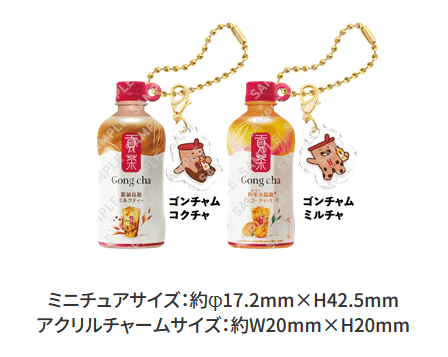 対象の飲料を一度に3本(組合せ自由)買うと、ゴンチャミニチュアキーホルダー(ゴンチャムアクリルチャーム付き)を1個プレゼント!
