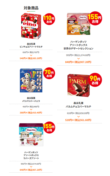 対象のアイスお買い得セール 2024年8月スタート!(夏休み)