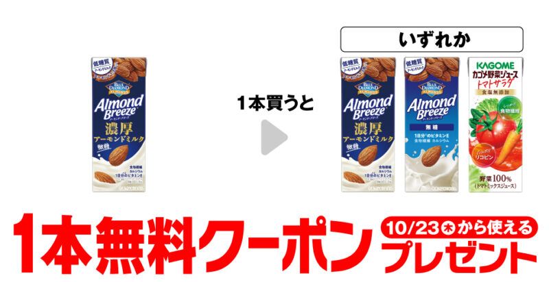 「カゴメ アーモンド・ブリーズ濃厚/無糖/野菜ジューストマトサラダ」がもらえるキャンペーン