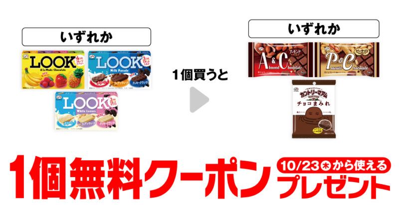 「不二家 アーモンド&チョコレート/ピーナッツ&チョコレート/カントリーマアム チョコまみれ」がもらえるキャンペーン