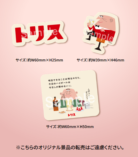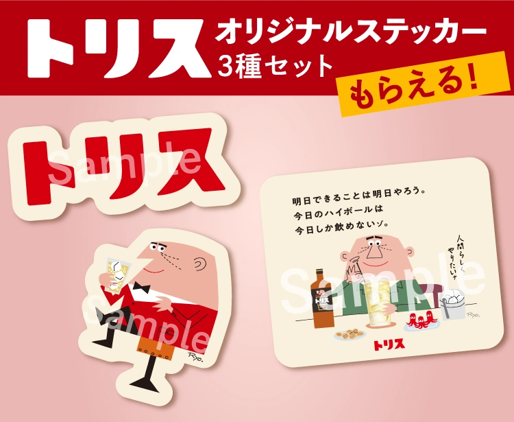 対象のトリスハイボール缶を一度に2本(組合せ自由)買うと、トリスオリジナルステッカーセット(3枚入り)をプレゼント!