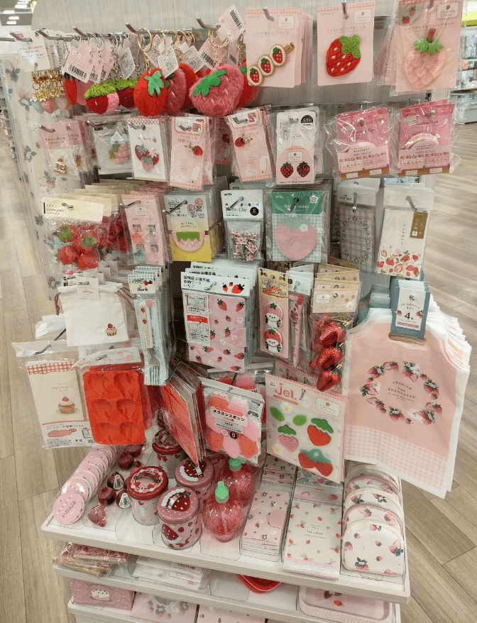 100均セリアから、『いちご柄』雑貨の新商品が販売しています!2025年10月末からの新作で、春に向けて大量に販売開始しています!