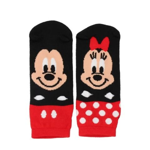 パペットタイプのスニーカー丈ソックス ミッキーとミニーの左右異柄になります