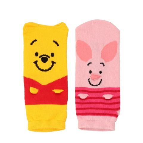 パペットタイプのスニーカ丈ソックス、プーとピグレットの左右異柄になります。