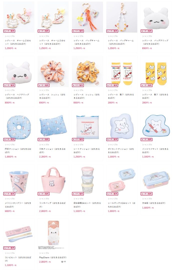 しまむら系列シャンブルでは、『はなまるおばけ』コラボのアパレルや雑貨グッズを販売しています。限定商品でファン必見です。