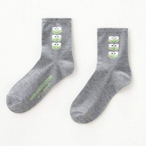 けろけろけろっぴがデザインされた、かわいいクルー丈ソックスです