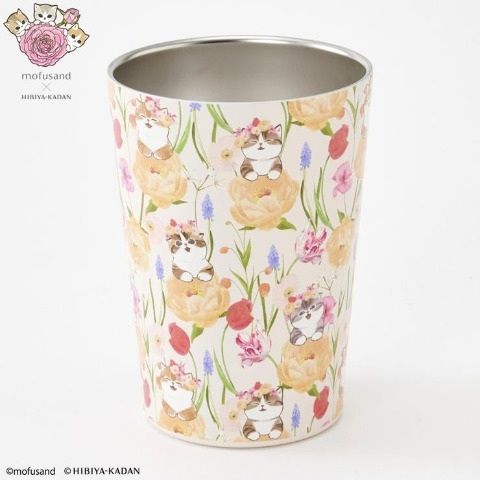 『mofusandのにゃんこたち』とお花がかわいいタンブラー。