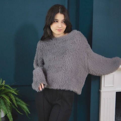 ふわふわの毛足が可愛さを引き立てる、ファー見えニットプルオーバー。