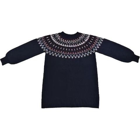 北欧ライクな求心柄が華やかで、1枚でコーデが完成するニットワンピ。