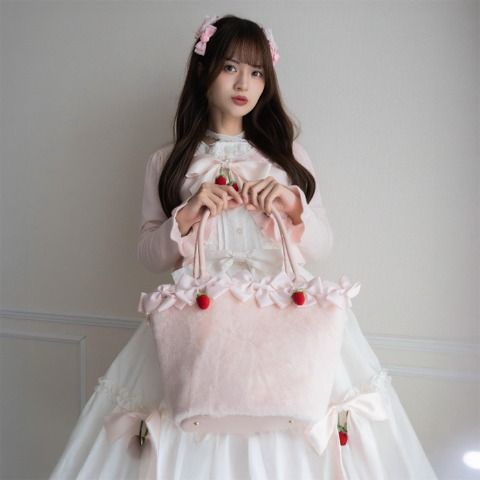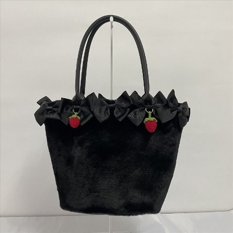 コロンとした編みぐるみイチゴが可愛いバッグ。