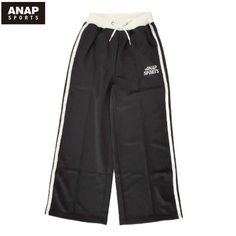 【ANAP SPORTS】からパンツが登場★白黒のコントラストがおしゃれなジャージワイドパンツです!ロゴ刺繍もワンポイントに♪おそろいのトップスに合わせてセットアップも可能★