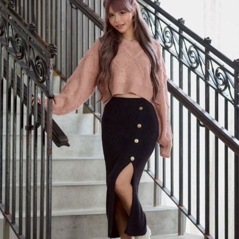 同シリーズのカーディガンとセットアップで着こなせば、韓国っぽ上品コーデが完成します。